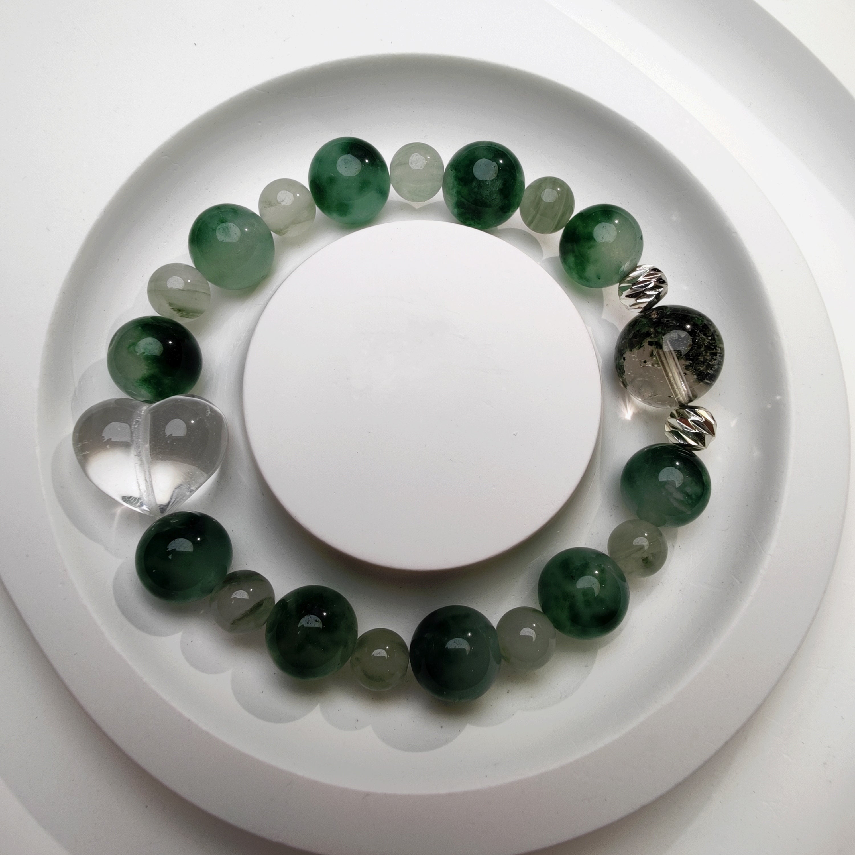 Moss Agate + Green Phantom + Clear Quartz Bracelet